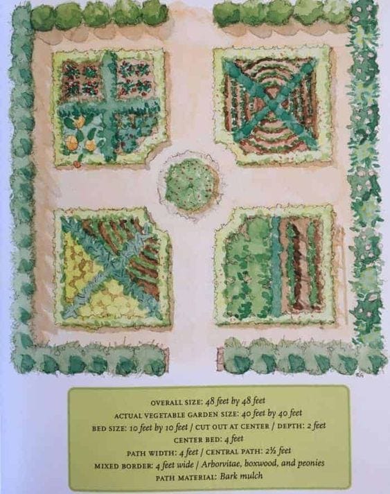 Garden Plans. I moved recently to a home with a garden, which has been a dream of mine for quite some time. I’ve been making progress - after a couple of initial hiccups, I built a raised bed and planted it with veggies that can tolerate (and even love) the Florida summer heat. I also started a little food forest that’s really taken off with cranberry hibiscus, Bele tree, Florida broadleaf mustard, edible spinach, an avocado tree and my (now thriving!) sapodilla tree. My next plan is to convert a large circular area beyond the driveway to a potager garden - with mostly herbs and vegetables, and some flowers. I’ve been looking at garden design plans for inspiration and thought I’d share a few here. So far the plan is to do an arched trellis at the entry way and then several raised beds around a centerpiece. So many possibilities!